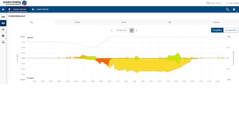 På natten är elbehovet i stallet, med ungefär 80 mjölkkor lågt och kan därmed täckas till 100 procent med den energi som har lagrats på dagen. ”Det förväntade sig inte ens min installatör.”